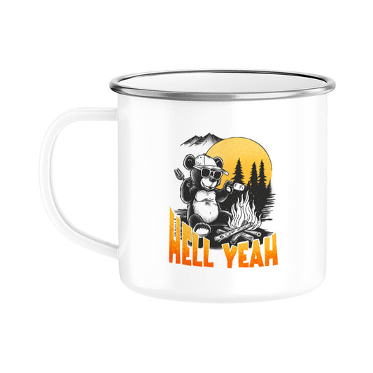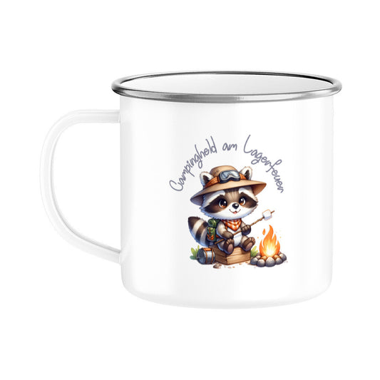 "Camping Held" - Kinder Emaille Tasse- beidseitig bedruckt - Rechts- & Linkshänder