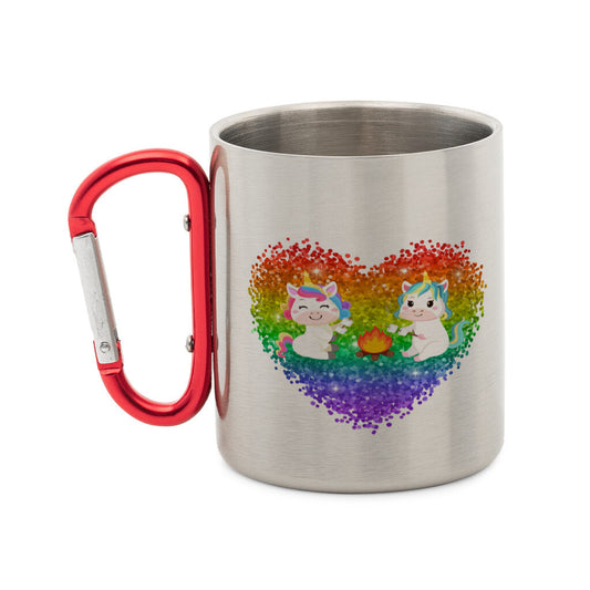 "Kristall Einhorn Feuer" - Edelstahl-Tasse mit Karabiner für kleine & Große Abenteurer - beidseitig bedruckt - Rechts- & Linkshänder