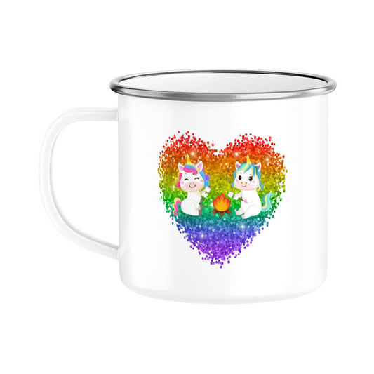 "Kristall Einhorn Feuer" - Kinder Emaille Tasse für Kleine & Große Abenteurer- beidseitig bedruckt - Rechts- & Linkshänder