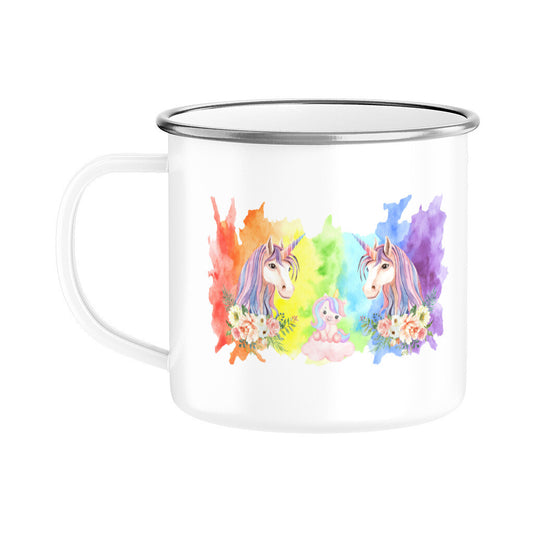 "Einhorn Familie" - Kinder Emaille Tasse 300 ml- beidseitig bedruckt - Rechts- & Linkshänder