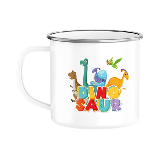 "Dinosaur Gruppe" - Kinder Emaille Tasse- beidseitig bedruckt - Rechts- & Linkshänder