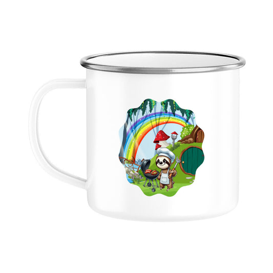 "Grillmeister Upsi" - Kinder Emaille Tasse 300 ml - beidseitig bedruckt - Rechts- & Linkshänder