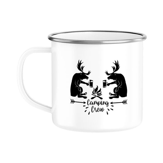 "Elch - Camping Crew" - Emaille Tasse- beidseitig bedruckt - Rechts- & Linkshänder
