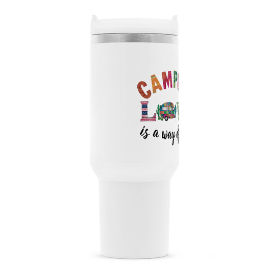 "Camping ist meine Therapie" - Edelstahl-Thermobecher – Dein Must-have für Camping & Outdoor (1200 ml, mit Strohhalm)